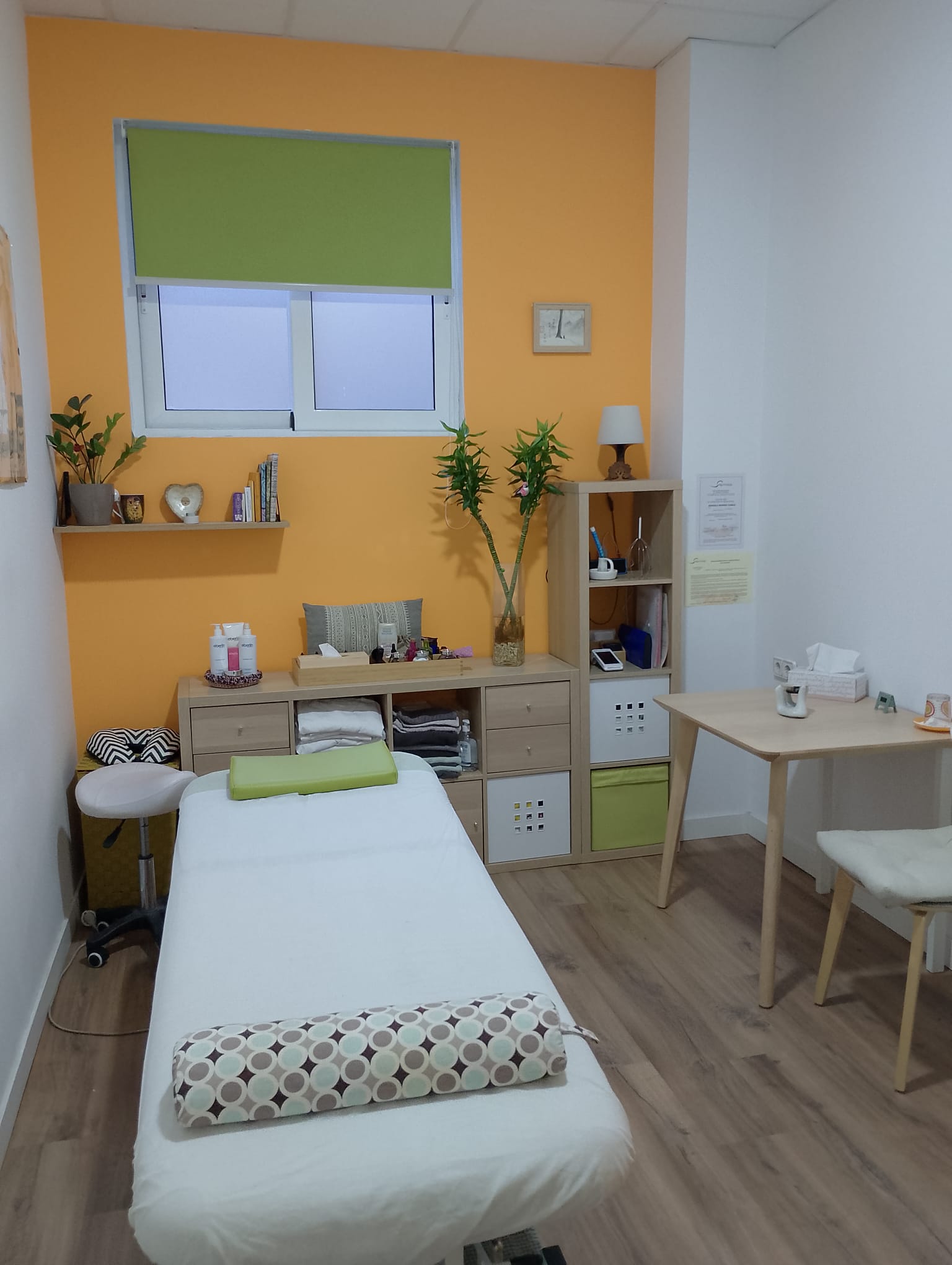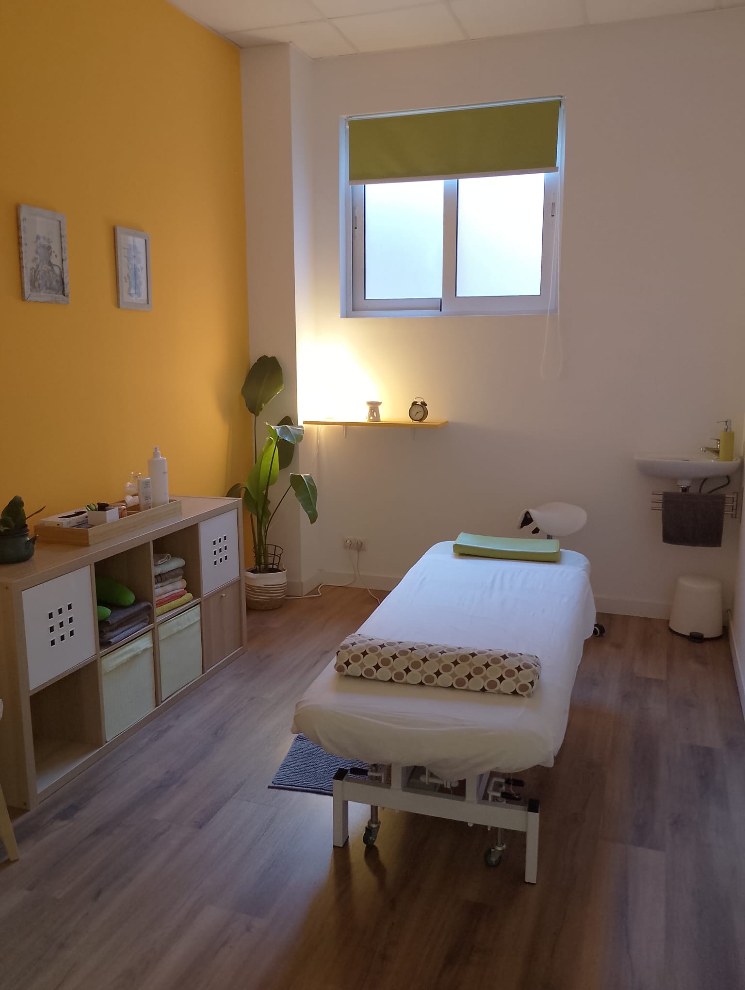 Sala espaciosa completamente acondicionada para la realización de sesiones de masajes y terapias, ofreciendo un espacio cómodo, funcional y acogedor. Dispone de una camilla profesional, una mesa auxiliar y dos sillas, además de lavabo propio para mayor comodidad e higiene. La climatización se realiza mediante bomba de calor y frío, garantizando una temperatura agradable durante todo el año.